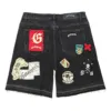 Godspeed Patchwork Brand Boom Denim Shorts Black