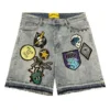 Godspeed Patchwork Brand Boom Denim Shorts Blue